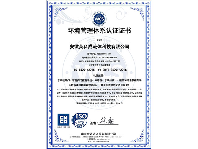 安徽英科成流體科技有限公司位于黃山腳下長江之濱的中國古銅都-安徽省銅陵市。公司注冊資金1.1億,是國內一家專業致力于給排水行業系統解決方案、閥門以及智能閥門技術研發與生產銷售服務為一體的企業。 我們擁有完善的質量控制體系和檢測設備,公司主要的產品有閘閥、蝶閥、偏心半球閥、液控蝶式止回閥、靜音止回閥、橡膠瓣止回閥、活塞式流量調節、錐型閥、節能型泵控閥、倒流防止器、減壓閥、排氣閥、排泥閥、伸縮器、閘門、啟閉機等二十多個系列,可以充分滿足客戶的一站式需求。……